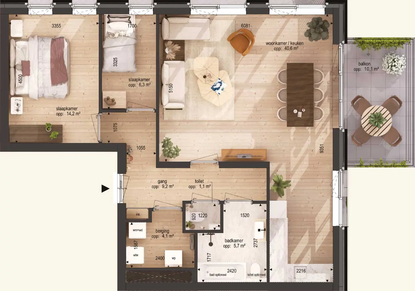 • Opp. balkon 10 m2