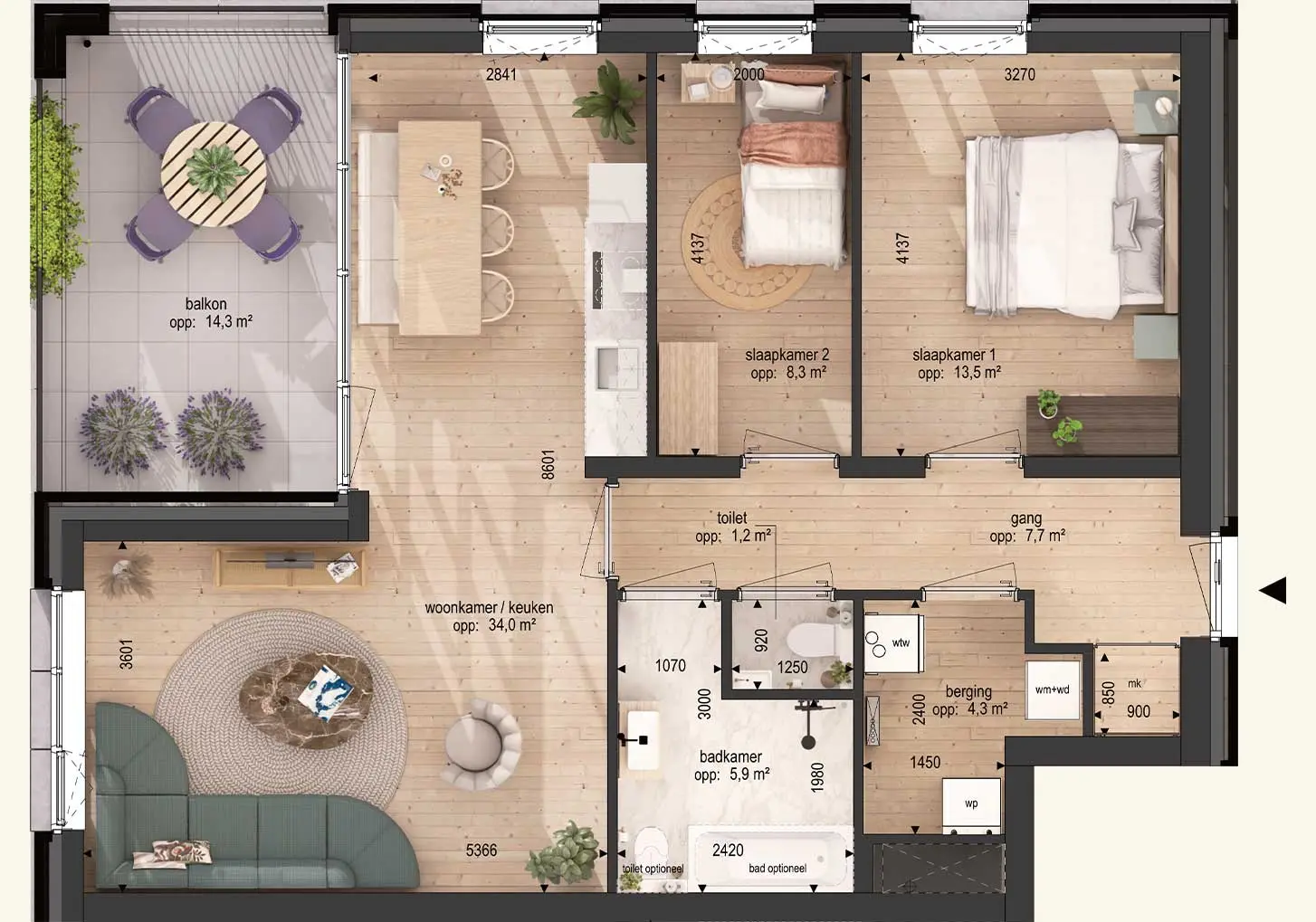 • Separate berging in stallingsruimte onder het gebouw van 5 m2