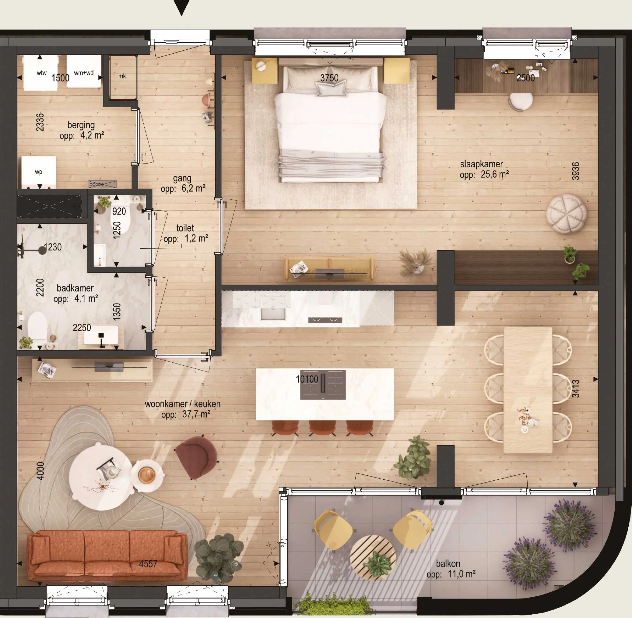 • Separate berging in stallingsruimte onder het gebouw van minimaal 5 m2